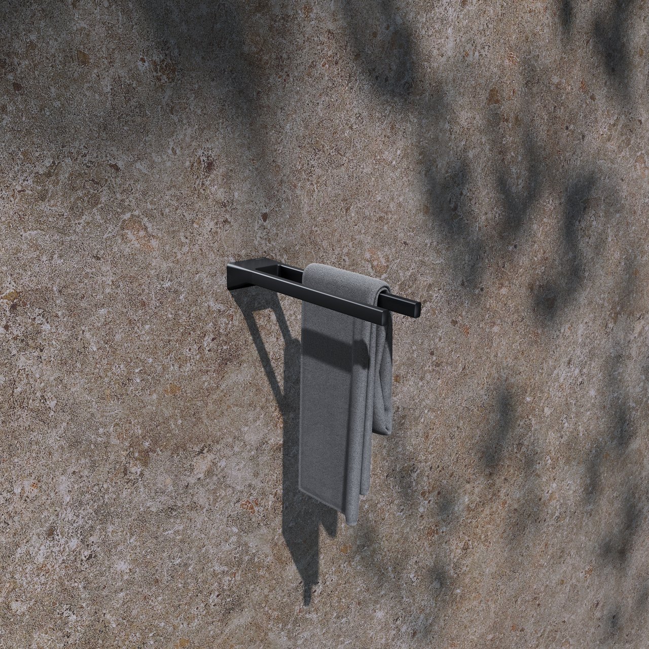 Am Waschtisch besticht der schwarz matte Glashalter mit Echtkristall-Glas für die Zahnbürste. Bei den Handtuchhaltern stehen ein- und zweiarmige Ausführungen in unterschiedlichen Ausladungen für die individuelle Badgestaltung zur Wahl.
